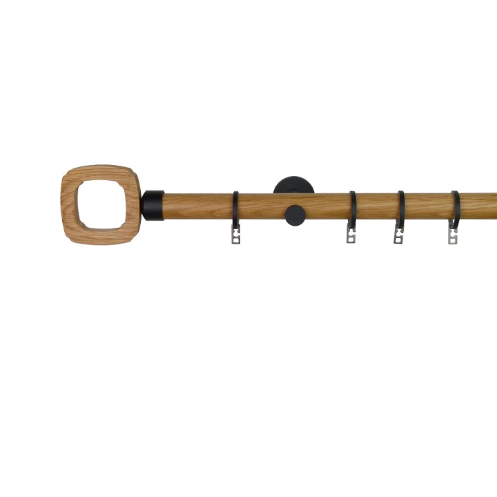 Zen 28 mm Wood Curtain Poles, Metal Rings and BracketsZen 28 mm Radlus Square Finial Wood Poles Set, Metal rings and Single brackets , Natural Oil